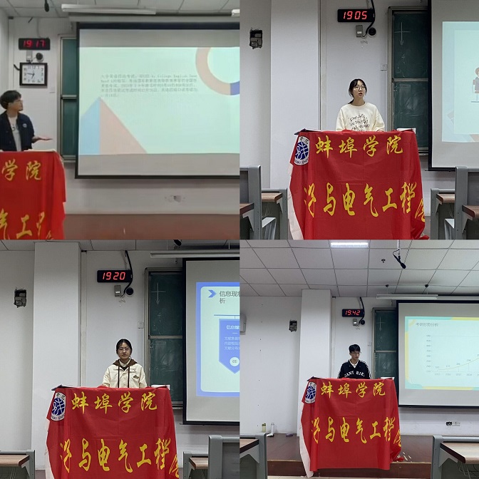 12月19日,22级自动化二班高新、21级电气工程及其自动化二班杨莹、22级自动化二班周雨分别介绍了如何规划大学时间、如何分配好时间、如何取得参赛资格以及自己获取消息的方式途径,强调学习要有四年、每学期和每周每日的个人规划和时间安排。