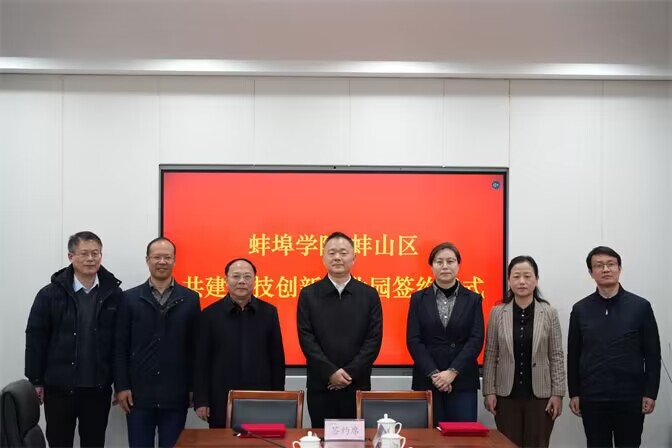 精准把握经济社会发展需求,强化政校企协同,统筹抓好资源对接、人才互聘、技术转移和学术培养。先后与蚌山区、禹会区、五河县、凤阳县、蚌埠市生态环境局等建立全面战略合作关系,组织“教授博士企业行”,累计走访企业152家,签订产学研合作协议200余项,横向到账4000多万元,19名教师入选安徽省首批“双链融合专员”名单。积极组织开展知识产权申报及成果转化,授权知识产权92项,签订代表性成果转化或应用项目13项。根据蚌埠市产业发展实际,聚焦新一代信息技术、高端装备制造、节能环保等蚌埠市支柱产业及重点产业,与蚌埠市蚌山区人民政府合作共建蚌埠学院科技创新产业园。充分发挥学校学科优势和品牌吸引力,逐步将其打造成为成果转化基地、企业孵化基地、公共实训基地、产教融合基地和产业招引基地。