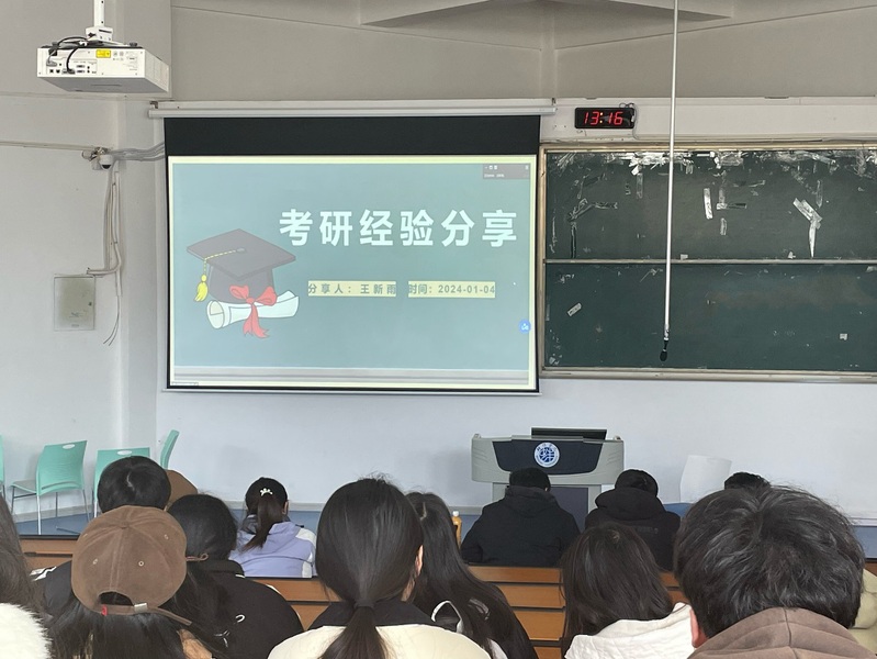 陈熠等五位校友结合自身考研历程,向学弟学妹们分享考研成功上岸的经验。陈熠从院校选择、备考方法等方面进行讲解,并分享了自己的考研经历。杨锐锐分享了如何选择复习资料、如何复习等考研经验。占强胜围绕如何高效复习、遇到问题如何寻求帮助,要积极调整备考状态,劳逸结合,提高学习效率。王新雨重点讲解了考研全程的阶段和时间划分,使同学们明确每个月的具体目标,要根据自身情况调整规划,做好心态调整,相信自己,坚持到最后。刘星伟进行了细致的学科复习方法分享,从专业课、英语、政治等方面的复习中给出了精细化的建议。整场交流会同学们兴趣很高,认真专注聆听。