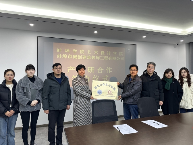 为深化校企合作,推进教学科研与产业实践的深度融合,1月31日,艺术设计学院与蚌埠市城创建筑装饰工程有限公司正式签署产学研合作协议,并举行校企合作实习基地挂牌仪式。城创建筑装饰工程有限公司总经理吴红霞、学院党委书记高善春、院长胡飞、环境设计专业负责人田玮等参加上述活动。