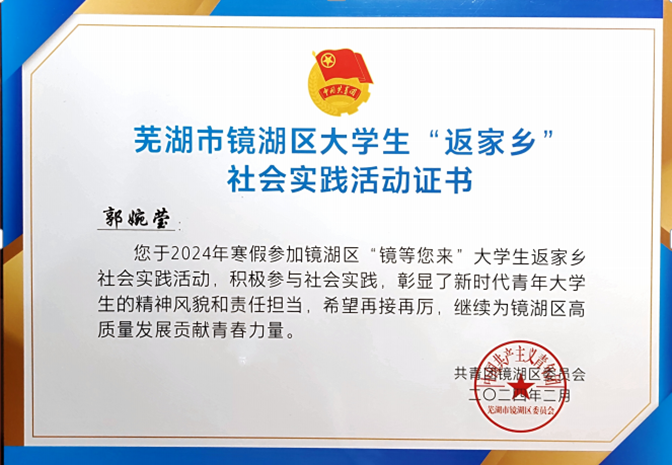 为贯彻落实党的二十大精神,深入贯彻习近平总书记关于青年工作的重要思想,落实好全省“人才安徽行”系列活动要求,根据团中央“返家乡”社会实践工作安排,计算机与信息工程学院团总支组织青年学子积极参加2024年寒假“创青春 返家乡”社会实践活动。