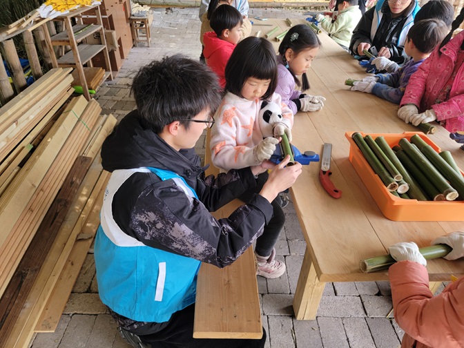 在此次活动中,志愿者们还和当地小朋友们一起互动,带领他们做木质手工,向孩子们宣传爱护树木、保护环境的重要性,让孩子们认识到保护树木和美好生活之间有着密切的关系,在动手与植物亲密接触的同时,向他们传递环保理念。