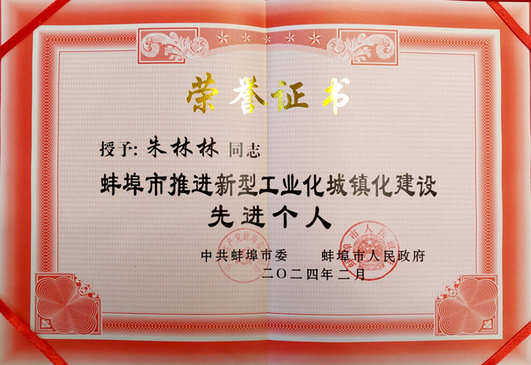根据《关于同意蚌埠市2023年市县级党委和政府表彰奖励项目的函》(皖评组函〔2023〕22号)要求,蚌埠市委、市政府决定对全市推进新型工业化城镇化建设先进集体和先进个人进行了表彰,材料与化学工程学院青年教师朱林林博士获得表彰。