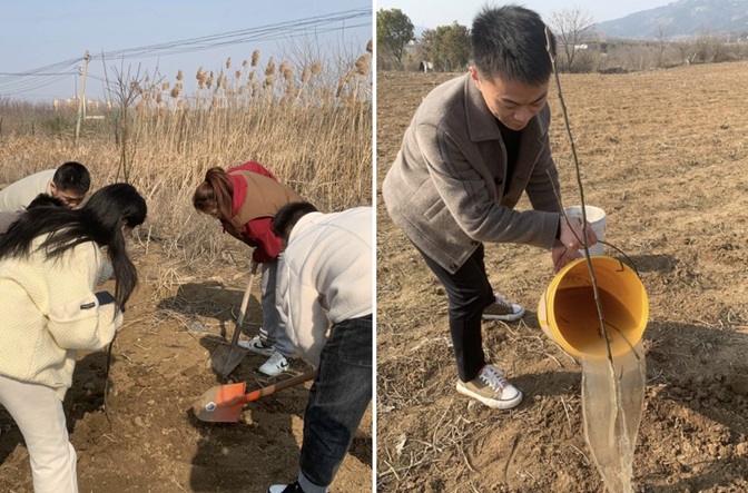 3月12日下午,计算机与信息工程学院学生第一党支部书记谢齐带领8名学生党员,走进蚌埠市禹会区三尖塘村,以“学习雷锋精神,践行志愿服务”为主题,组织学生党支部联合开展植树节主题党日活动。