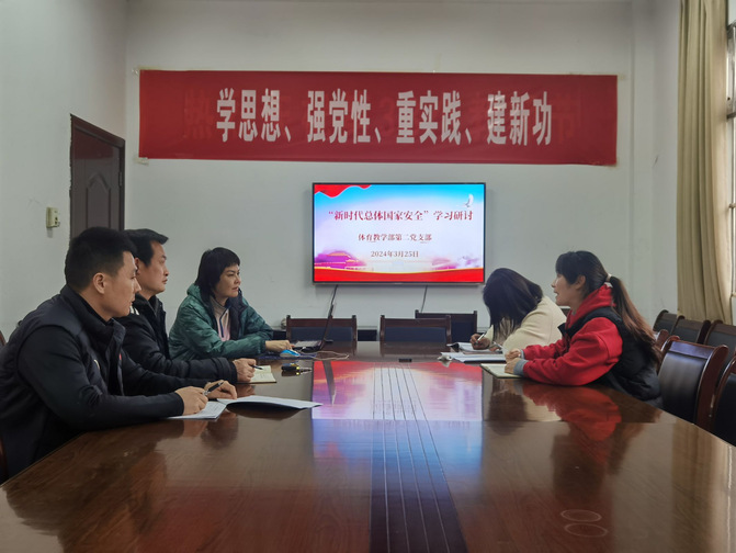 3月25日,蚌埠学院体育教学部第二党支部组织开展“新时代总体国家安全观”学习研讨,会议由体育教学部第二党支部书记徐峰主持,体育教学部副主任张双玲到会指导,体育教学部第二党支部党员参加会议。