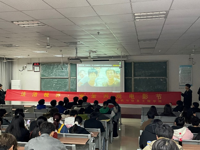举办“法治视界——安全共观电影节”活动。为了让同学们更好的遵法学法守法用法,学院举办“法治视界-安全共观电影节”活动。精选法治电影作品,通过电影中的情节和人物,形象传达法律的力量和重要性,以轻松的方式开展法治教育,同学们不仅享受了电影带来的乐趣,还获得了对法治重要性的深刻认识。