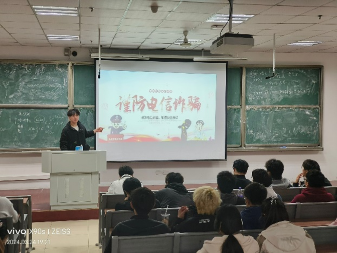 开展安全主题班会。为提高学生安全意识和自我保护能力,学院在全院范围内以安全为主题召开班会。活动中,通过实例讲解,围绕交通安全、消防安全、防范电信网络诈骗、校园欺凌等方面,组织学生深入讨论安全问题的重要性及预防措施,特别针对电信网络诈骗问题,同学们在承诺书上签字,表达他们抵制网络诈骗的决心。