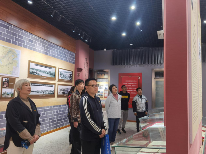 最后,全体党员参观了蚌埠市革命历史陈列馆,大家仔细观看历史文献、照片及珍贵的史料和实物,认真倾听讲解员的动情解说。