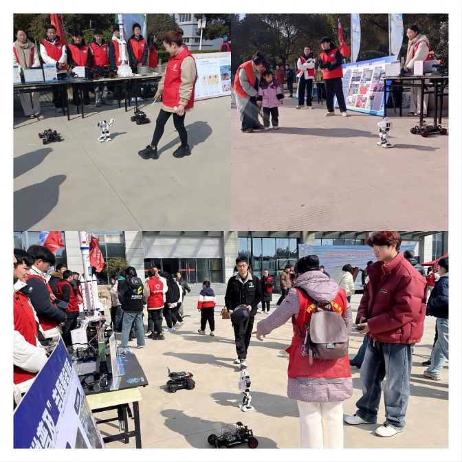3月3日上午,蚌埠市“学雷锋·文明实践我行动”主题活动启动仪式在蚌埠学院举行。学院向日葵志愿服务队的志愿服务活动以“弘扬科学精神、助力科学普及”为主题,现场展架展示了志愿服务队参加蚌埠市全国科普日主场活动、无人机群表演、LED创意灯展、无人机技术讲座及飞行表演活动、地质公园科普宣传、爱心支教,以及与蚌埠市红十字会、福利院开展的义捐、应急救护系统培训、关爱留守儿童等活动开展情况。活动现场,实物展现了机器人表演、机械臂操作、智能车、LED创意灯展作品,其中一台由精密零件组装而成的机器人吸引了众多参观者的目光。这台机器人能够通过先进的传感器识别周围的环境,并利用其灵活的机械臂完成精细的操作任务。学生们自豪地介绍,这款机器人是他们针对工业生产线上的自动化需求而设计的,能够有效提高生产效率和准确性。