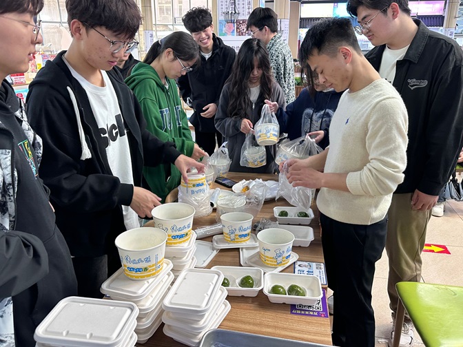 经过一上午的忙碌,制作好的青团飘香阵阵,大家享受着品尝传统美食的喜悦,现场一片热闹愉悦的温馨氛围。趁着青团散发着浓郁香味,志愿者们立刻出发,分发给老师和学校工作人员。一盒盒青团,传递着志愿者们对老师和工作人员的关心和节日问候。
