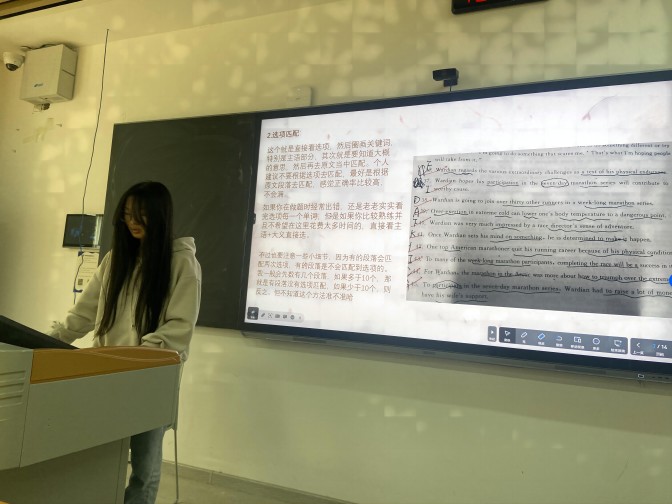 分享会上,4位优秀四级考生依次分享了她们的考试经验和心得,从听力、阅读、翻译、写作等方面进行了详细的阐述。其中,王义莹建议大家要合理安排学习时间,制定个性化的学习计划,并结合教材、辅导资料进行系统学习。同时,她还强调了心态的重要性,鼓励同学们保持自信,克服焦虑,充分发挥自己的实力。发言赢得了在场学生的阵阵掌声,学生们纷纷表示,此次会议让他们受益匪浅,对今后的四级备考具有重要指导意义。最后辅导员毛荟老师对本次分享会进行了总结,她希望同学们能将所学运用到实际学习中,不断提高英语水平。