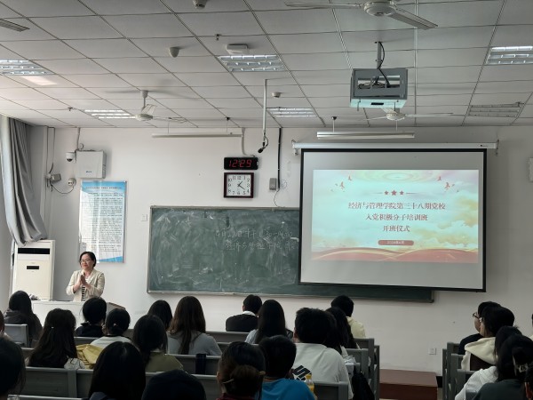 为加深入党积极分子对党的认识,坚定入党的决心,经济与管理学院于4月22日中午在G103举行学院第三十八期入党积极分子培训班开班仪式。学院党委副书记夏晓燕出席此次仪式,学院党务秘书吴燕秋和第三十八期入党积极分子培训班全体学员参加了开班仪式。