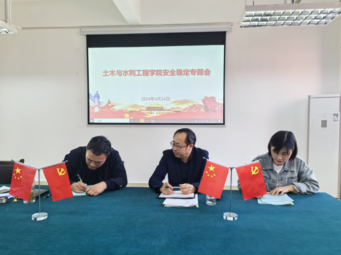 4月24日下午,土木与水利工程学院在学院会议室理工楼419召开了安全稳定专题会议,会议由学院党委书记张兆亮、院长戚晓明主持,全院教职工参加了会议。