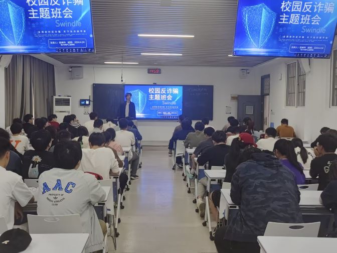为切实加强防范电信网络诈骗宣传教育,进一步提升学生知诈、识诈、防诈、反诈意识,筑牢学生反诈防骗意识的“防火墙”。4月24日,电子与电气工程学院利用周三下午空课时间组织学生观看反诈电影《孤注一掷》,观影采用集中与分散相结合的方式,学院组织100名学生代表在教学楼C103集中观影,各班级召开主题班会自行分散观影。
