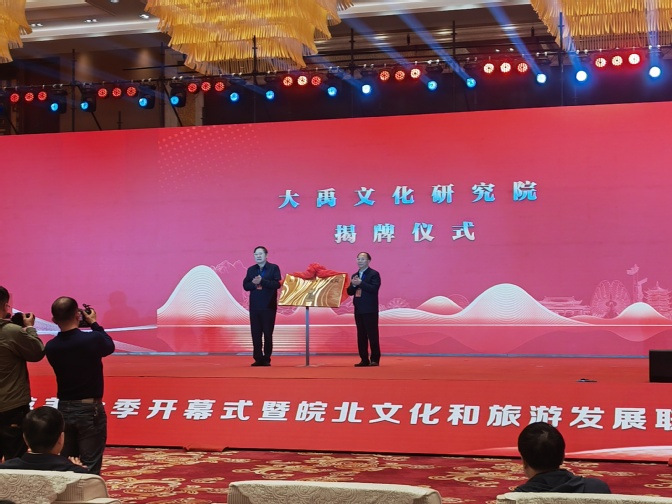 4月28日上午,蚌埠市大禹文化研究院成立揭牌仪式在蚌埠市第二届文化旅游美食季开幕式暨皖北文化和旅游发展联盟成立仪式上举行。蚌埠学院党委书记陈国龙与中国社会科学院学部委员、研究员王巍共同为蚌埠市大禹文化研究院成立揭牌。