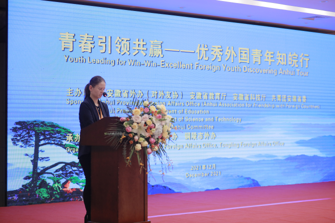 匈牙利籍教师作为代表在“青春引领共赢——优秀外国青年知皖行”活动上发言