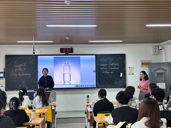 课堂上,王老师巧妙融合英语知识与环保主题,讲解环保词汇、阅读文章,并引导学生们深入讨论,不仅注重学生的英语专业能力的教育,同事注重帮助学生拓宽全球视野;结合思政元素,引导学生们思考环保与国家、人类命运的关系,激发了社会责任感和使命感。