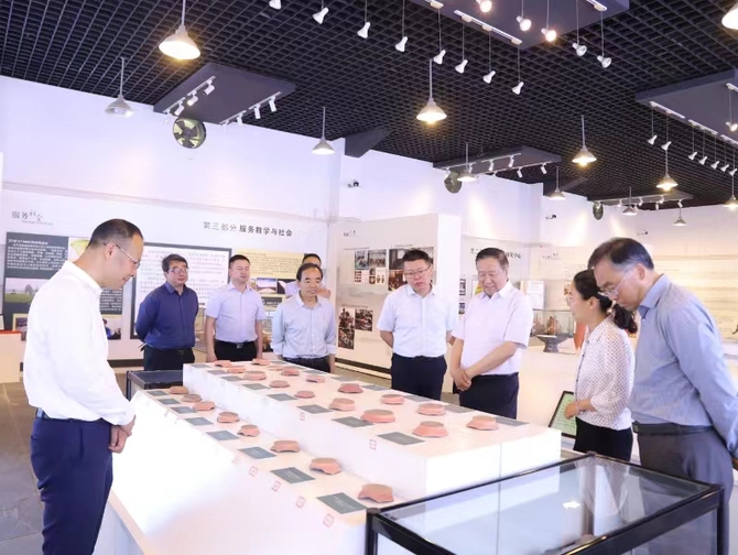 5月17日上午,省政府参事“创建淮河国家文化公园”重点课题组深入我校,参观淮河文化展览馆,就“整合文化资源 创建淮河国家文化公园(安徽段)”进行专题调研。校党委副书记、院长孙艳辉以及相关部门负责人陪同。