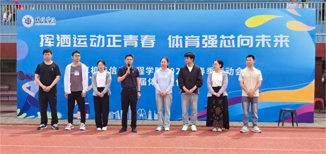 本次春季运动会暨体育文化节,是学院体育强“芯”工程的一次重要展示,也是学院“红芯”育人党建品牌的具体实践,更是同学们展示风采、挑战自我、超越自我的舞台,希望同学们在体育运动中释放压力、享受快乐、强身健体、锤炼意志。