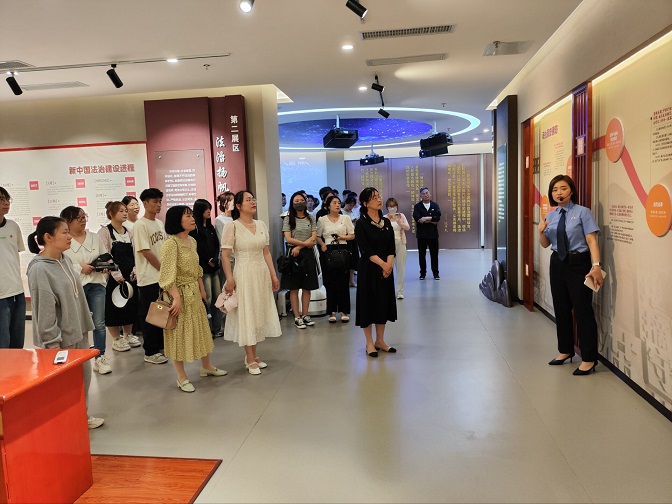 新时代法治宣传警示教育基地共分法史悠悠千载传、法治扬帆新时代、以案释法敲警钟、法治蚌埠展宏图和法治文化润民心等五个展区。五个展区从不同层面展示了中国特色社会主义法治体系的文化传承与发展,习近平法治思想的丰富内涵以及蚌埠市法治实践的成果。党员同志们在讲解员的带领下依次对五个展区进行了参观学习。讲解员结合图片、视频、场景模拟等多种方式,让大家了解到了近年来查处的全国大案、要案以及蚌埠市典型贪腐案例,给大家上了一堂生动又深刻的警示教育课。