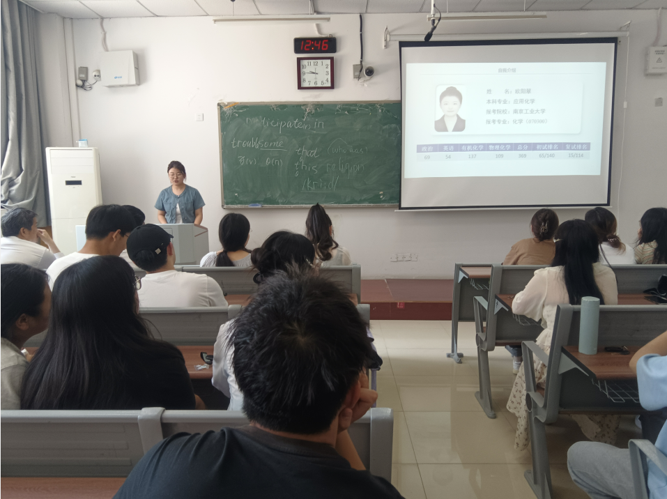 为了提高学生的考研热情,明确考研目标,掌握备考技巧,材料与化学工程学院于2024年5月28日中午,在G101教室举办了“筑梦考研,扬帆起航”考研经验分享交流会。会议邀请了王永魁、刘彩艳、杨庆敏三位博士,以及考研成功上岸的2024届优秀毕业生丁婉怡(中国矿业大学)、欧阳翠(南京工业大学)、刘士美(桂林电子科技大学)参与经验分享。会议由党委副书记朱银邦主持,2021级意向考研的同学参加了会议。