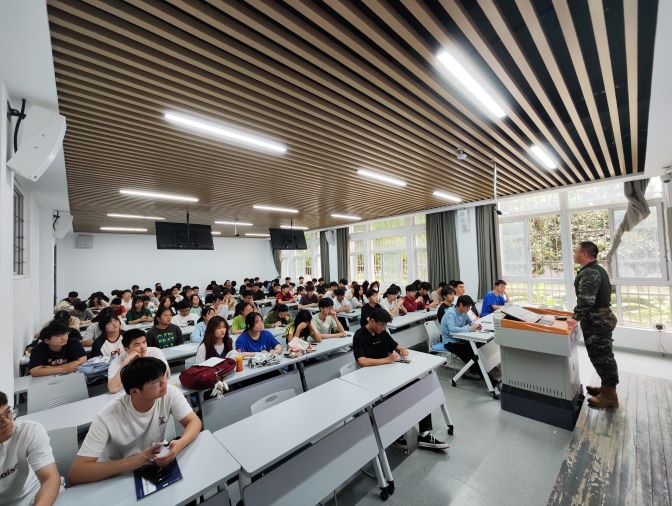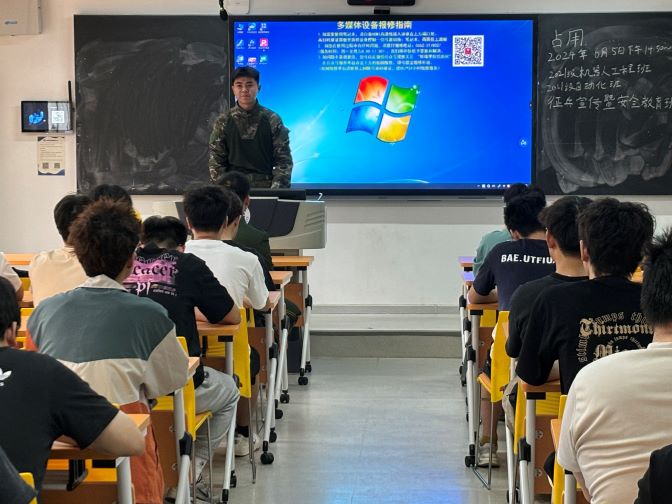 为全面贯彻落实国务院、中央军委征兵命令和全省征兵工作电视电话会议精神,进一步落实国家征兵工作相关要求,增强大学生的国防意识和参军入伍的热情,加强大学生参军入伍政策宣传的针对性,扩大征兵政策宣传的影响力和辐射面。6月5日,电子与电气工程学院分别在B309、B107教室面向学院2021级学生召开征兵动员宣讲会。宣讲会由学院征兵宣传队的3名退役复学学生主讲。