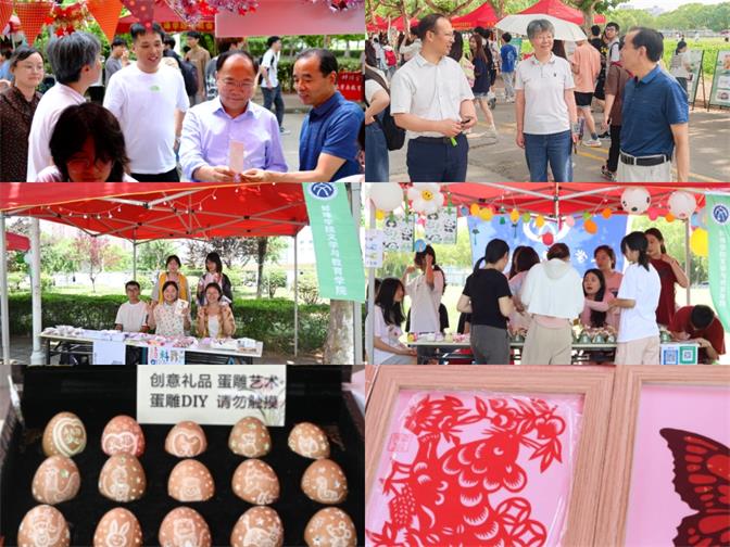 6月7日,端午文庙会在图书馆与学生宿舍主干道、运动场和第一食堂举办,包括活动体验、文化宣传以及才艺展示三项内容,第一食堂举办了《“粽”享快乐》教职工包粽子大赛,由文学与教育学院2023级和2022级的学子们悉心打造的文庙小集供全校师生参观和体验。现场设置的草编、蛋雕、剪纸和面塑非遗摊位由非遗传承人现场制作,极具意趣,其中,由蚌埠市非遗剪纸传承人吴桂兰女士负责经营的摊位,吸引了众多热爱非遗文化的学子们,彰显了非遗文化一代代人接力传承的力量。文化宣传区设立了安徽各地市的端午文化宣传板,充分展现了极具安徽特色的端午习俗和源远流长的传统文化,文化展示不仅加深了学生对端午文化的认识,也让学生充分领略到了安徽端午文化的特有韵味。才艺展示区,舞台上精彩呈现了古筝演奏、舞龙舞狮、古典舞和中国风歌曲等表演,赢得阵阵喝彩,成为全校师生观赏和放松的绝佳场所,给师生们带来了一场难忘的艺术盛宴。