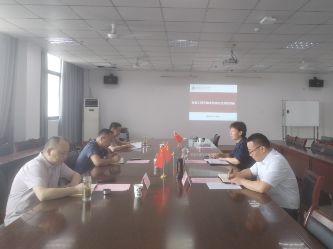 张敏对安徽工程大学同行来访表示热烈欢迎,介绍了学院办学历史、发展现状、教学科研和人才培养等情况;葛金龙就学科建设、课程改革、教科研团队建设以及服务地方等方面情况进行了介绍和交流。