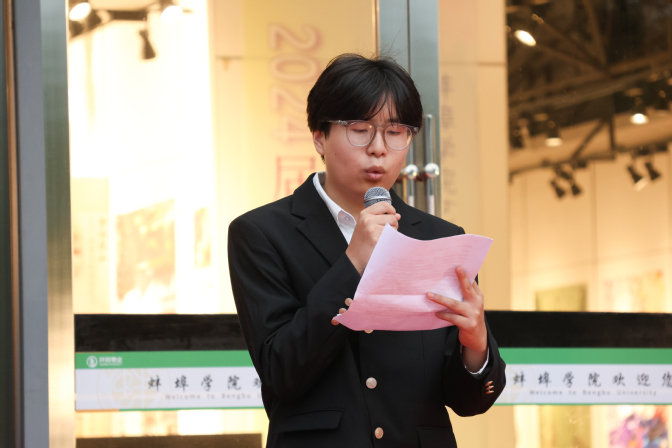 艺术设计学院第18届学生会主席团成员、20级环境设计1班班长、学生代表曾照强上台分享了他发自肺腑的毕业感言。他分享了自己在校期间不负青春的成长经历,代表全体毕业生感恩母校,感谢老师们的教导,祝愿母校蒸蒸日上,再创辉煌。