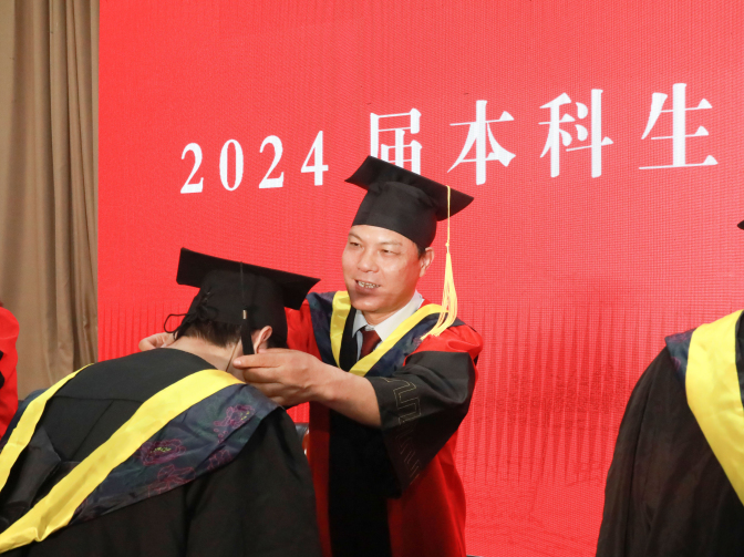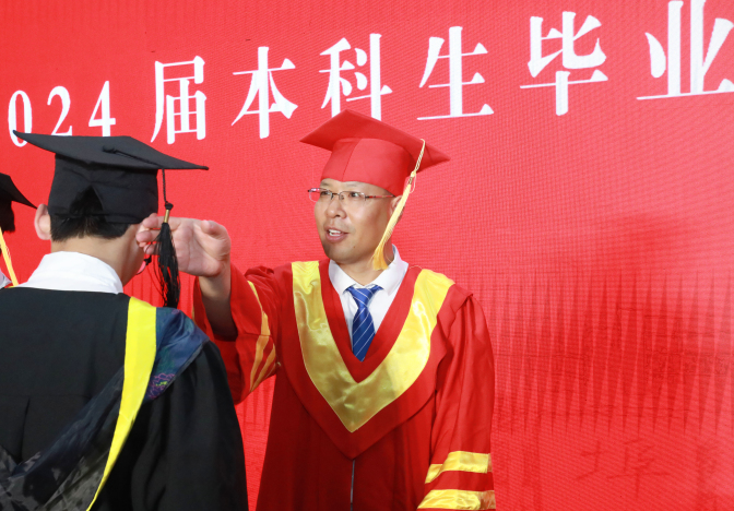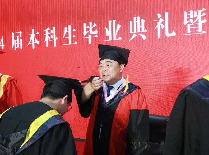 孙艳辉向毕业生致辞。他表示,过去的四年,我们共同亲历了祖国极不平凡的新成就、共同见证并参与了学校以及青年学生的发展和成长。对于毕业生们如何走好新阶段的人生路程,他提出了三点希望,要坚持初心、永葆朝气,把为社会、为国家、为民族、为人类的“大格局”,同个人兴趣、爱好、生活、职业的“小天地”紧密结合,在中国式现代化伟大征程中贡献力量。要不断学习、积蓄才气,继续优化学习方法,坚持学习,掌握真才实学,让终身学习成为扬帆远航的动力,让增长本领成为青春搏击的能量。要坚守底线、涵养正气,牢记做人的基本道德、做事的基本规则,增强社会责任感和公民意识,做践行社会主义核心价值观的典范。