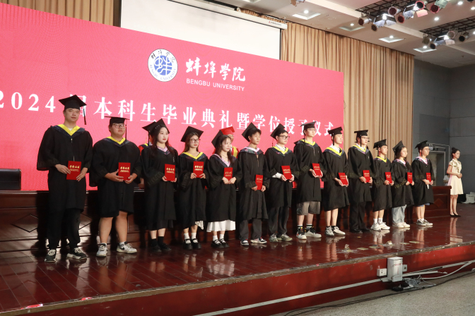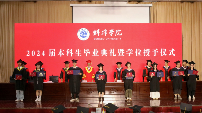 凝荷之下,蝉鸣鸟啼;光阴似水,此去经年。6月25日上午,蚌埠学院于学术报告厅举行2024届本科生毕业典礼暨学位授予仪式,学校党委副书记、院长孙艳辉,党委副书记韦文联,党委委员、副院长郭有强,各单位、各部门主要负责人,各二级学院党政领导,教师、辅导员代表出席典礼,共同见证2024届毕业生的人生重要时刻。毕业典礼由韦文联主持。