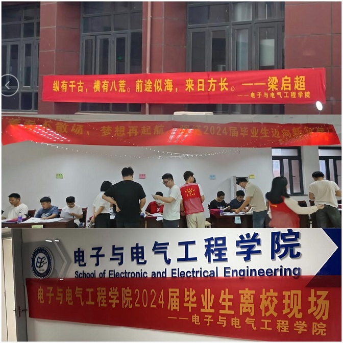 时光荏苒,岁月如歌,毕业季的钟声敲响了新篇章的序曲,电子与电气工程学院有序开展2024届毕业生文明离校教育和毕业生离校工作,向即将开启人生新篇章的2024届342名毕业生致以最热烈的祝贺,并对他们寄予了崇高的期望。