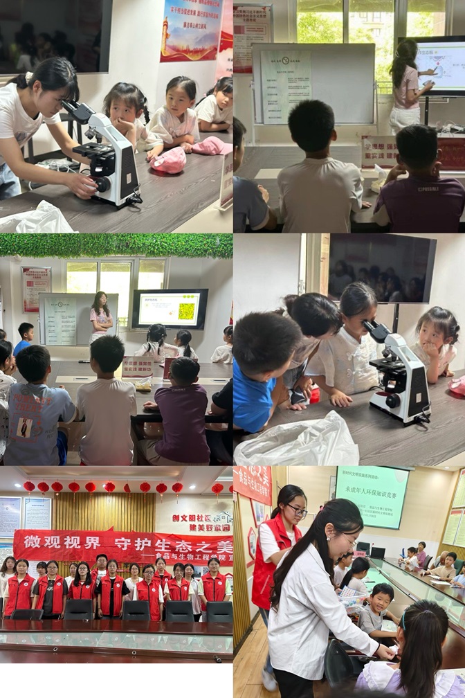 7月7日-8日,食品学院暑期实践团在曾霖老师带领下,深入社区开展生态环保活动。首日于学苑社区,助小朋友探秘微观生态,共同制作植物生态微景观瓶;次日赴蚌埠建筑一村,举办生态环保讲座,以有奖竞答激发小朋友环保热情。随后,团队参与户外环保,清理垃圾,推广分类,为社区环境添力。
