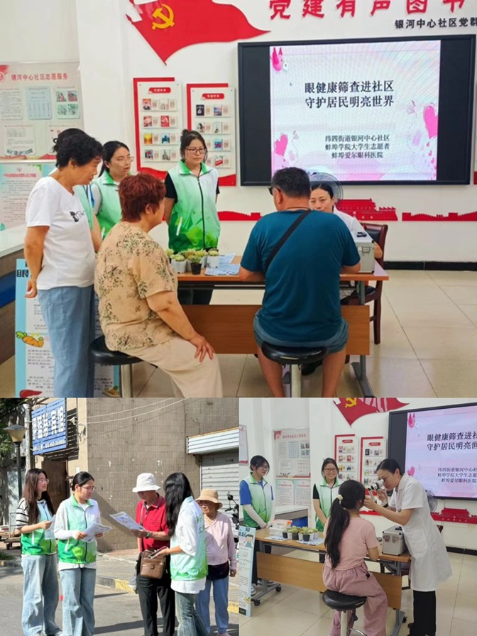 7月8日,食品学院暑期实践团携手蚌埠爱尔眼科医院,在闫利萍老师指导下深入银河社区,举办眼科健康义诊。现场,爱尔眼科专家为居民提供视力、眼底等全面检查,实践队员则普及眼健康知识,解答老人疑问,传授护眼技巧。此外,还发放健康手册与免费药品,助力居民日常护眼,传递关爱与责任。