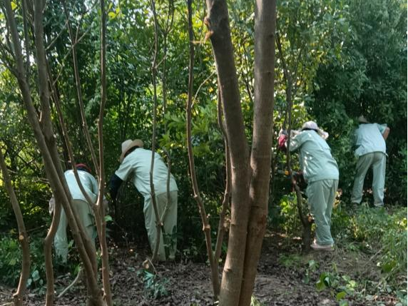 苗圃清疏,绿意盎然展新姿。校园北侧苗圃的茂密树林也在这个暑假得到了精心清疏。树林生长过于茂密,影响树木的健康生长和校园整体景观。物业人员化身“绿色卫士”,手持专业工具,对树枝进行精心修剪,清理掉枯死的树木和杂草。经过清疏后的苗圃,树木更加通风透光,茁壮成长,为校园增添了勃勃生机。