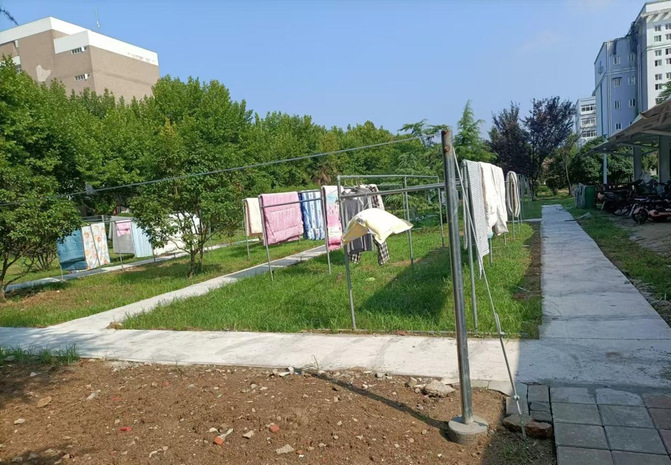 晾晒场整治,阳光下的温馨风景。学生晾晒场在暑期也经历了一场“蜕变”。旧的晾晒场上杂乱拉绳遍地,设施破旧,给学生们的生活带来诸多不便。工作人员对晾晒场进行了全面整治清理,他们仔细平整场地,修复损坏的晾晒设施,重新合理布置。现在,学生晾晒场干净整洁,设施完好,为学生们提供了一个舒适、便利的晾晒环境。