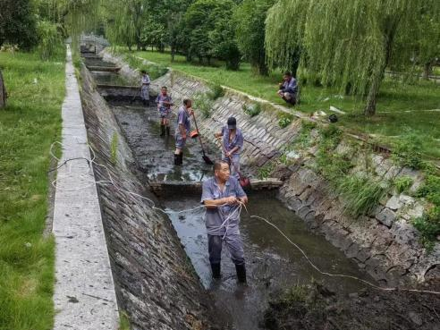 景观水系重生,碧波荡漾迎客来。行政楼东侧景观水系,因岁月沉积底部堆积着厚厚的淤泥,水草、青荇丛生,水体浑浊,滋生蚊虫。物业工作人员不惧酷暑,穿上防水服,深入水系底部,一锹一锹地将淤泥清理出来。经过努力,如今景观水系焕然一新,水质清澈见底,微风吹过,泛起层层涟漪。