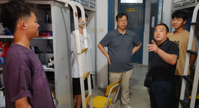 深入宿舍,温暖关怀。9月7日下午,新生报到接近尾声,学院党委副书记孙礼俊、院长孙西超、党委副书记李明带领两支辅导员队伍深入学生宿舍,与学生们亲切交谈,详细询问他们的入学报到情况、住宿情况,传达学院对新同学们的深切关怀与殷切期望。
