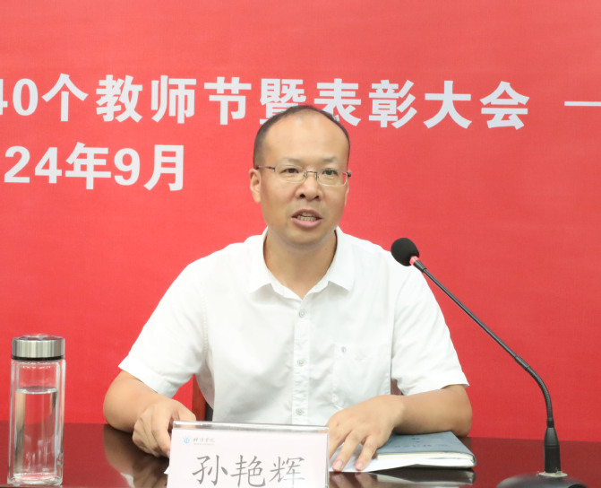 孙艳辉在主持时强调,全体师生要以这次表彰大会为契机,敢为人先、创新理念,以更加饱满的热情和高昂的斗志,凝心聚力、追求卓越,传承“笃学 重行 修德 立才”的校训精神,踔厉奋发、勇毅前行,以高深学问教化人,以高尚师德感染人,以高度的责任心和使命感做好硕士学位授予单位创建和迎接新一轮本科教育教学审核评估各种准备工作。