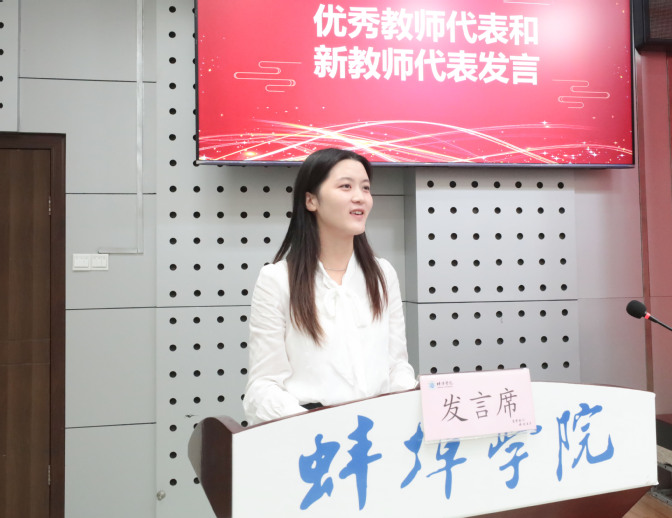 “作为新教师要向受表彰的老师前辈们学习,赓续立德树人初心,担当为国育才使命,以更加饱满的热情和更加坚定的信念,当好“大先生”,上好思政课,在蚌埠学院绽放出青春的梦想之花!”新进思政课教师代表程孝英表示。