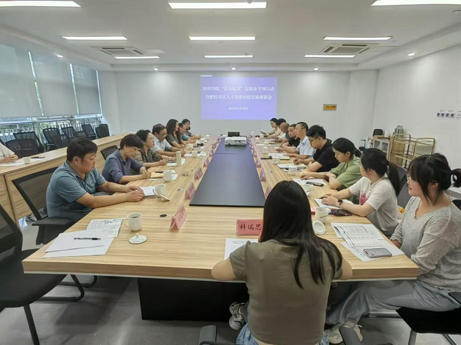 20日下午,韦文联一行来到合肥经开区开展人才供需对接,与合肥经开区党建工作部(组织人事局)副部长(副局长)、人力资源中心主任张华,人力资源中心企业服务部部长焦妮娜以及合肥经开区相关企业人事部门负责人进行交流座谈。韦文联向当地人社局及相关企业单位对学校事业发展的关心和支持表示感谢,重点介绍了学校的办学定位、专业设置、师资力量以及毕业生就业情况,详细了解了企业的人才需求和岗位信息。双方围绕如何更好地搭建校企之间的合作平台、提升人才培养质量、就业实习等进行了深入探讨,并就进一步做深做实政校企合作达成共识。