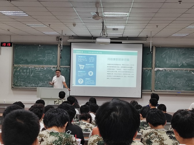 9月11日,邀请龙子湖区公安分局110指挥中心主任陈兴武为新生们进行防、反诈骗教育。电信诈骗一直是在大学校园里潜在的风险点,此次防、反诈骗教育提高了学生们的自我保护意识。