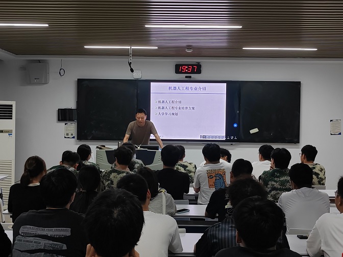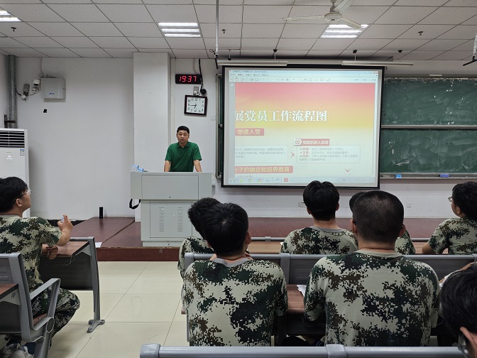9月10日,学院学工组长刘亮和团总支书记刘斯文面对全体新生们开展思想政治教育,为新生们介绍入团、入党的必要条件和基本流程,鼓励学生们在思想政治上积极追求进步。