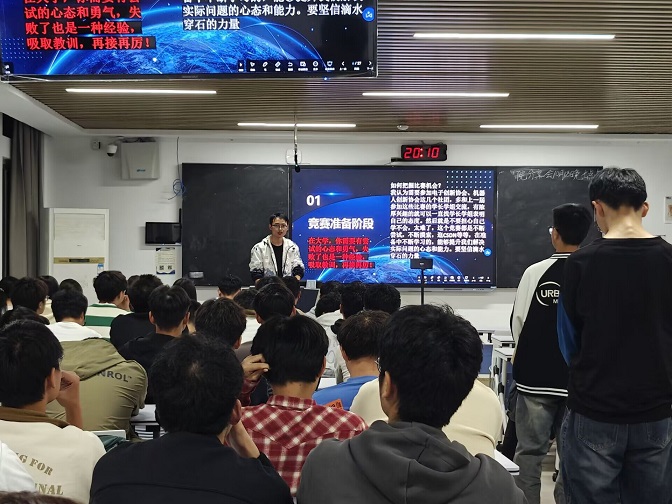 主持人方柏煜同学对各位成员的到来表示欢迎并简要介绍此次分享会的活动议程。2022级电气工程及其自动化2班谢子贤同学重点介绍了大学生综合素质测评的测评点和内涵解读,主要围绕综合素质测评的意义、范围、方法、应用以及实际操作等方面,以深刻的见解和实用的建议,解答了学生对综测方面的疑惑。2021级机器人工程张平安同学,曾多次获得“优秀大学生”“优秀志愿者”“学习标兵”等荣誉称号,并获得智能汽车竞赛全国一等奖等多项学科竞赛奖。张平安给同学们全面讲解了课程学习的正确方法、有效途径以及大学四年职业规划的注意事项,重点介绍了如何高效参加学科竞赛等内容,通过相关竞赛活动视频,展现了参赛准备的工作日常,用实际的竞赛经历给大家做经验指导。通过他的分享,同学们纷纷表示对今后的学习和竞赛有了更为具体的规划与准备。2022级电子信息工程2班魏家星同学为大家讲解参加智能车竞赛方面的心得。他从竞赛准备阶段、备战策略、实战技巧与问题攻克等多个方面分享智能车比赛的形式和关键流程。通过智能车依赖感应系统灵活避障并完美完成自主行驶任务的视频,极大地激发了同学们对参加智能车竞赛的兴趣。最后,主持人发表闭幕致辞。
