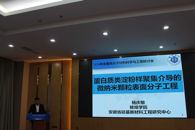 2024年10月15-19日,2024年全国高分子材料科学与工程研讨会在江苏扬州举行,会议由扬州大学和清华大学共同承办。材料与化学工程学院杨庆敏博士参加,并作题为《蛋白质类淀粉样聚集介导的微纳米颗粒表面分子工程》的报告。