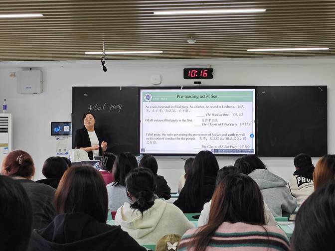 10月29日,外国语学院公外第二教研室开展大学英语课程思政公开示范课活动,肖佳老师主讲本次课程。本次公开课课程为《大学英语Ⅰ①》Unit2 Text A课文“A child’s clutter awaits an adult’s return”。 公外第二教研室主任汪静、外国语学院质量监控小组成员及部分教师参加了此次公开课听评活动。