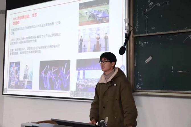 为了深入贯彻落实习近平总书记关于加速推动媒体融合发展的重要论述精神,进一步提升学校宣传工作的整体水平,加强学校学生记者的政治素养、理论素养以及业务能力,2024年1月2日中午12:30,党委宣传部在阶梯教室4举办淮畔融媒大讲堂系列活动。蚌埠学院优秀学生记者代表张永恒,为新媒体联盟的全体成员带来了淮畔融媒大讲堂第五期——宣传摄影工作经验分享讲座。蚌埠学院大学生记者团的全体成员以及新媒体联盟成员单位的成员参加讲座,讲座由党委宣传部新闻中心主任毛星懿主持。