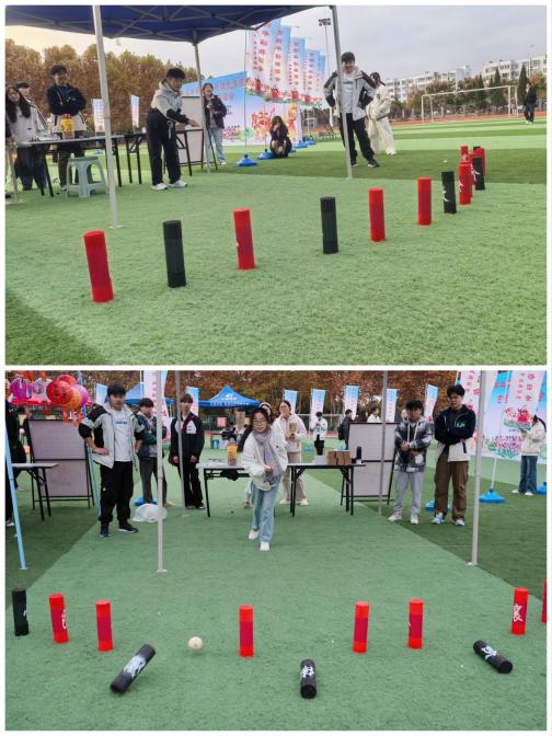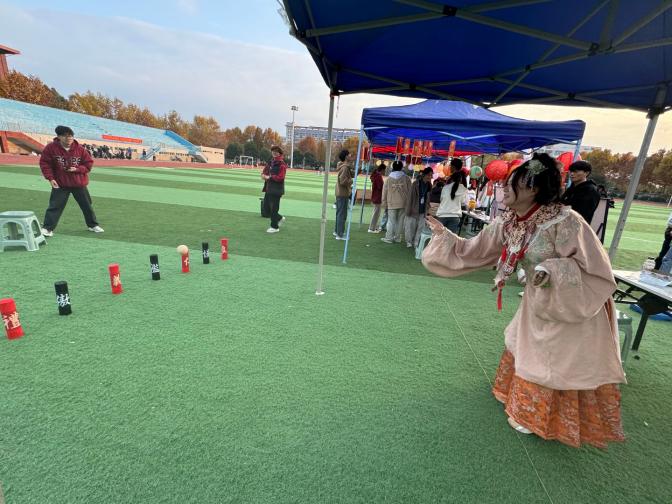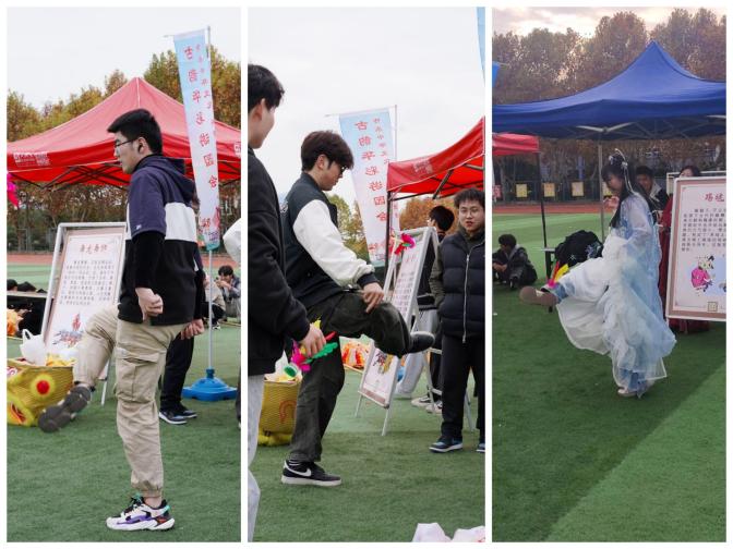 踢毽子和投壶作为传统的体育项目,吸引了众多同学参与。不仅锻炼了身体,也加深了对传统文化的认识。“就差一点!”“我投中了!”投掷项目需要运气与实力相伴,目光如刀、气势如风、坚定投出,不论结果如何,欢笑与掌声总会在人群里翻涌起伏。