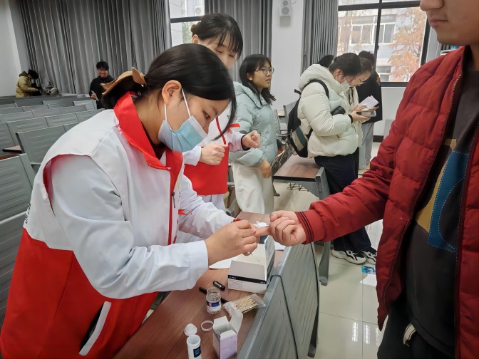 活动的最后,医院负责人还免费为同学们进行乙肝抗体检测,消除了同学们内心担忧,使同学们亲身体验了抗体检测的过程。
