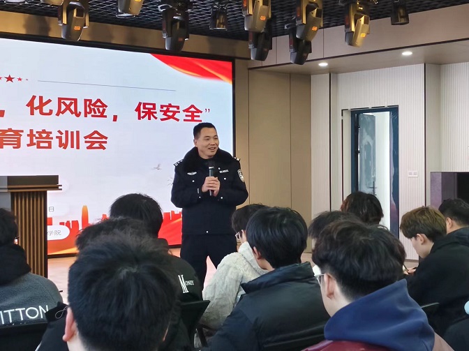 培训会的第一个环节中,龙湖派出所所长、省级陈兴武工作室负责人陈兴武围绕“知危险,化风险,保安全”主题,以生动的语言和真实的案例,深入剖析了校园生活中潜在的各类安全风险,涵盖意识形态安全、网络安全以及校园活动安全等多个领域。他强调,学生干部在维护校园安全稳定方面肩负着重要责任,要时刻保持警惕,提高风险识别能力。陈兴武还就如何有效化解风险提出了具体措施,如加强安全教育宣传、建立信息反馈机制等,鼓励学生干部们积极发挥模范带头作用,带动全体同学增强安全意识,共同营造安全和谐的校园环境。